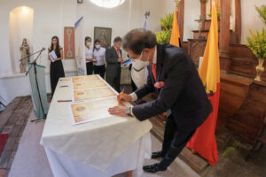 Esta mañana, en Sangolquí, se llevó a cabo la firma de la Declaratoria de Chillo, acto que da inicio a la celebración del bicentenario de la Batalla de Pichincha.