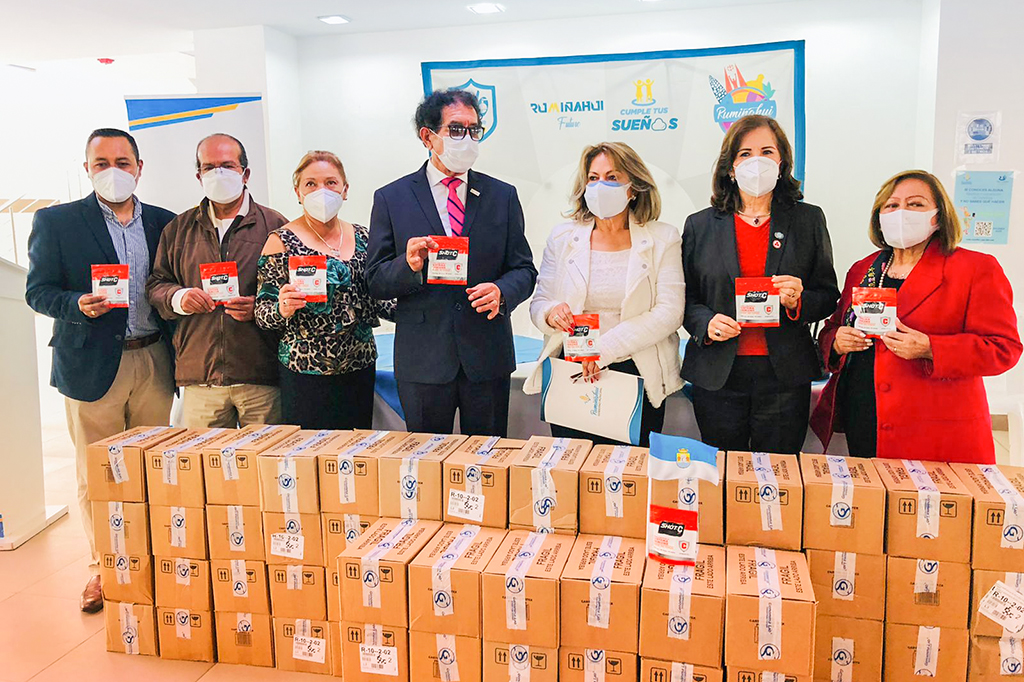 Hoy, miércoles 10 de noviembre, el alcalde Wilfrido Carrera, en representación de la Municipalidad de Rumiñahui, recibió una donación de 3.240 sobres de vitamina C. El donativo fue efectuado por la Mesa Panamericana de Quito, una organización de voluntariado internacional avalada por la OEA.