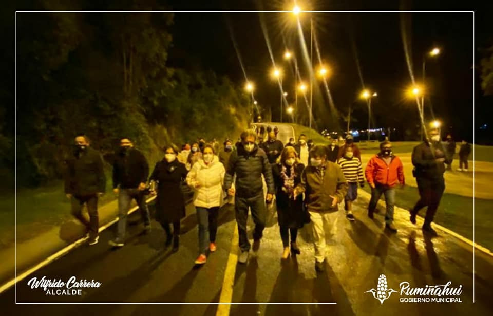 Además, mencionó la puesta en marcha de un proyecto de alumbrado de espacios públicos, mediante convenio con la Empresa Eléctrica Quito, propuesto por el burgomaestre en 2019. “En ese marco se iluminó el parque Eduardo Kingman, el complejo deportivo de San Jorge, el parque Hermano Miguel”, agregó. El alcalde, Wilfrido Carrera, dijo. “La población no quiere discursos grandilocuentes, ni enfrentamientos entre autoridades. La gente quiere y necesita obras, y estamos dando testimonio de trabajo, a través de las obras que entregamos”. Recordó que como vicealcalde y presidente de la Comisión de Presupuesto, en la administración anterior, impulsó la construcción del Bulevar. Los asistentes procedieron al corte de la cinta para declarar, de forma simbólica, inaugurada la iluminación. Las concejalas Rita Neacato y María Eugenia Sosa acompañaron la jornada.