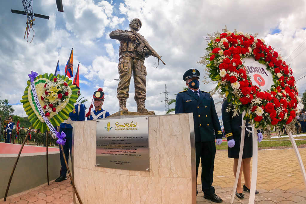 Este 26 de septiembre, en la entrada a uno de los barrios emblemáticos y tradicionales del cantón Rumiñahui, el alcalde Wilfrido Carrera junto con autoridades militares, inauguraron la Plaza Cívica “Héroes del Cenepa” y develaron las placas de los monumentos que se levantan en el sitio, como símbolo de la lucha por la patria.