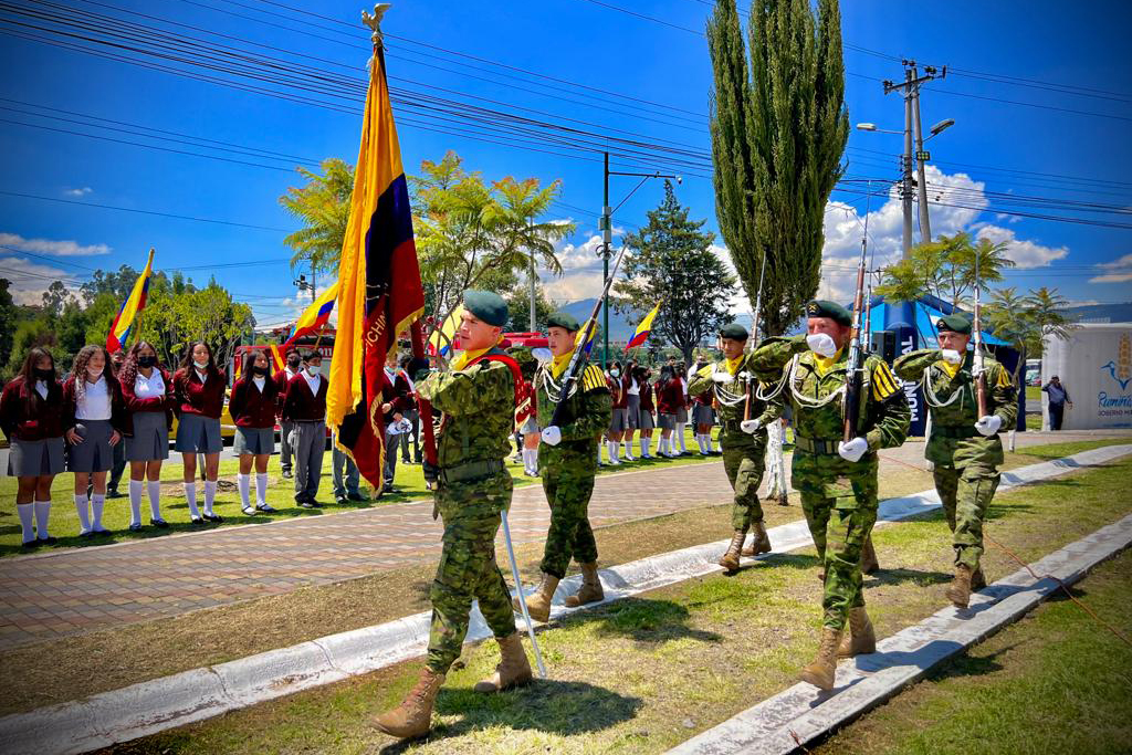 El Ejército hizo un reconocimiento a los abanderados de la Unidad Educativa Juan de Salinas y Jacinto Jijón y Caamaño, entregó una proclama y destacó el rol de la educación en el desarrollo del país.