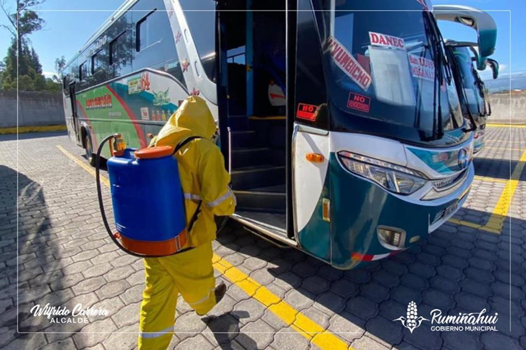 Ante la declaratoria de emergencia sanitaria dictada por el Gobierno Nacional el pasado 11 de marzo, y tras conocerse las medidas respecto de la pandemia COVID-19, el Municipio de Rumiñahui, a través de la Dirección de Movilidad y en coordinación con la Empresa Pública Municipal de Faenamiento y Cárnicos, realizará la desinfección de las unidades de transporte público que circulan en el cantón Rumiñahui.